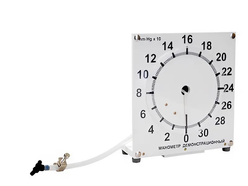 Манометр демонстрационный предназначен для измерения избыточного над атмосферным давления газов при проведении демонстрационных опытов по молекулярной физике.