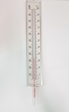 Прибор представляет собой баллон, соединенный со стеклянной трубкой-капилляром, заполненной подкрашенной жидкостью. Трубка закреплена на основании. Шкала оцифрована в градусах Цельсия и Кельвина. Пределы измерения температуры от -5º до 100ºС и от 268˚ до 373˚К. Цена деления шкалы - 1ºС и 1ºК.