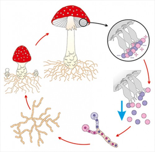 При таком объединении – половом процессе, носящем название соматогамии, – происходит слияние цитоплазмы клеток, а их ядра объединяются в пары – дикарионы, которые затем синхронно делятся. В итоге образуется дикариотичный мицелий, который может существовать очень долго.