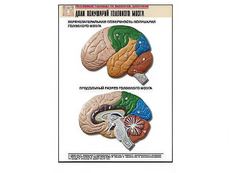 Рельефная таблица "Доли полушарий головного мозга" (формат А1, матовое ламинирование)