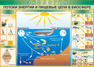 Таблица "Потоки энергии и пищевые цепи в биосфере" (100х140 сантиметров, винил)