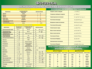 Таблица "Международная система СИ. Основные Физические Постоянные. Приставки для образования десятичных кратных и дольных единиц" (100х140 сантиметров, винил)