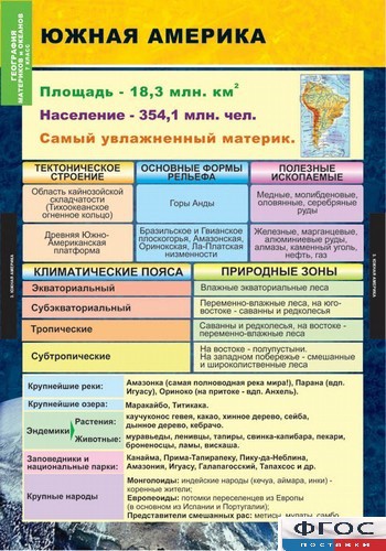 Комплект таблиц. География. Материки и океаны 7 класс.