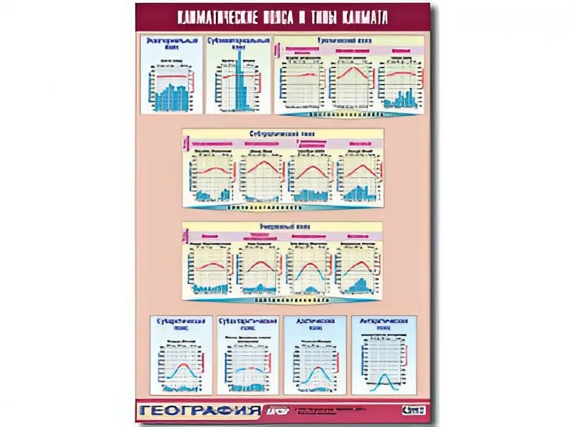 Таблица демонстрационная "Климатические пояса и типы климата" (винил 70*100) - fgospostavki.ru - Махачкала