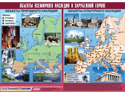 Таблица демонстрационная "Объекты всемирного наследия в Зарубежной Европе" (винил 100*140)