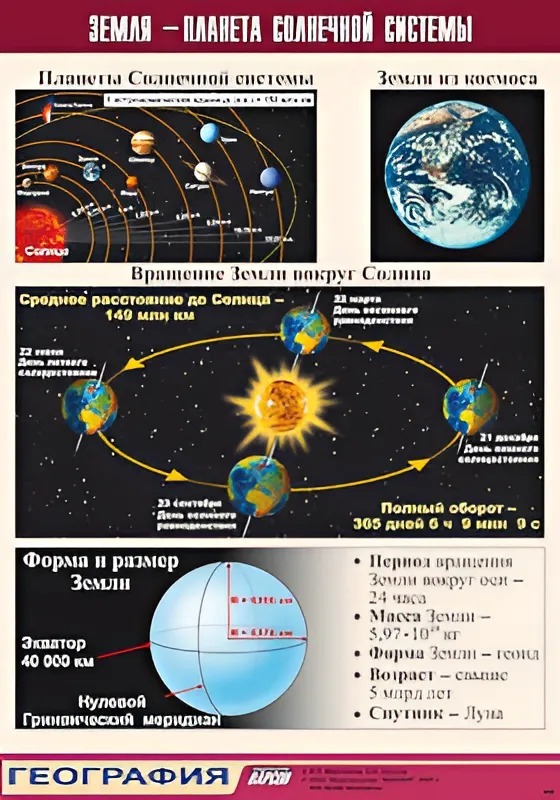 Главная Каталог Демонстрационные учебно-наглядные пособия Кабинет географии Таблица демонстрационная "Земля - планета Солнечной системы" (винил 70*100)
