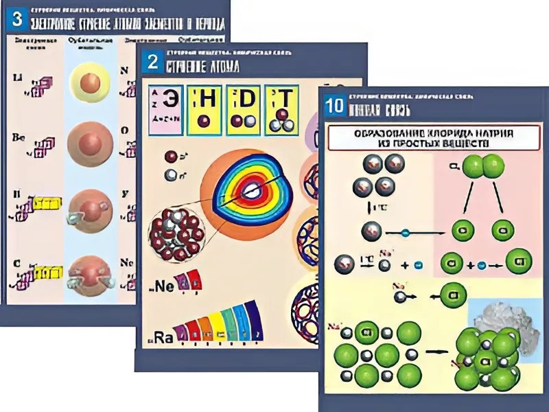Комплект таблиц по химии демонстрационных "Строение вещества. Химическая связь" (16 таблиц, формат А1, ламинированные)