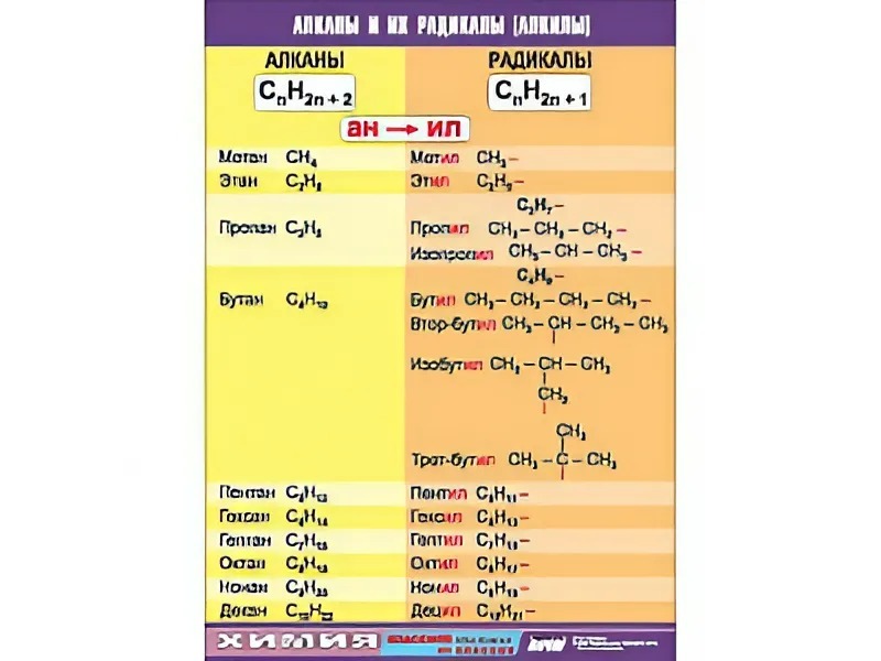 Таблица демонстрационная "Алканы и алкилы" (винил 70х100) - fgospostavki.ru - Махачкала