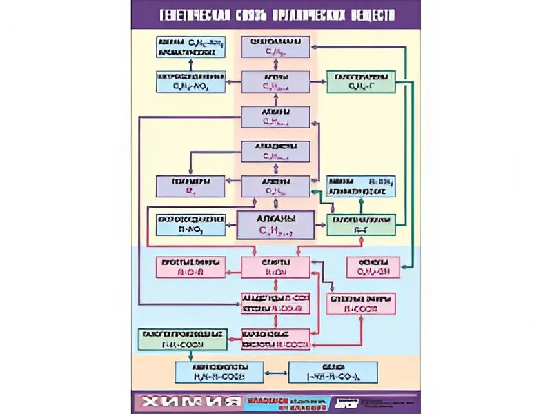 Таблица демонстрационная "Генетическая связь органических веществ" (винил 70x100) - fgospostavki.ru - Махачкала