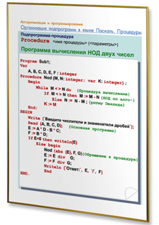 - Организация подпрограмм в языке Паскаль. Процедуры
