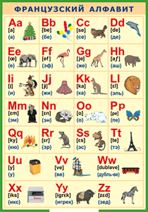 Таблица "Французский алфавит в картинках (с транскрипцией)" (100х140 сантиметров, винил) - fgospostavki.ru - Махачкала