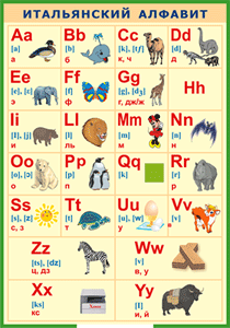 Главная Каталог Демонстрационные учебно-наглядные пособия Кабинет иностранных языков Таблица "Итальянский алфавит в картинках (с транскрипцией)" (100х140 сантиметров, винил)