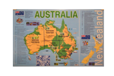 Учебная карта Австралия и Новая Зеландия на английском языке