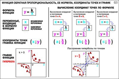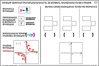 3. Функция обратная пропорциональность, ее формула, координаты точек и график