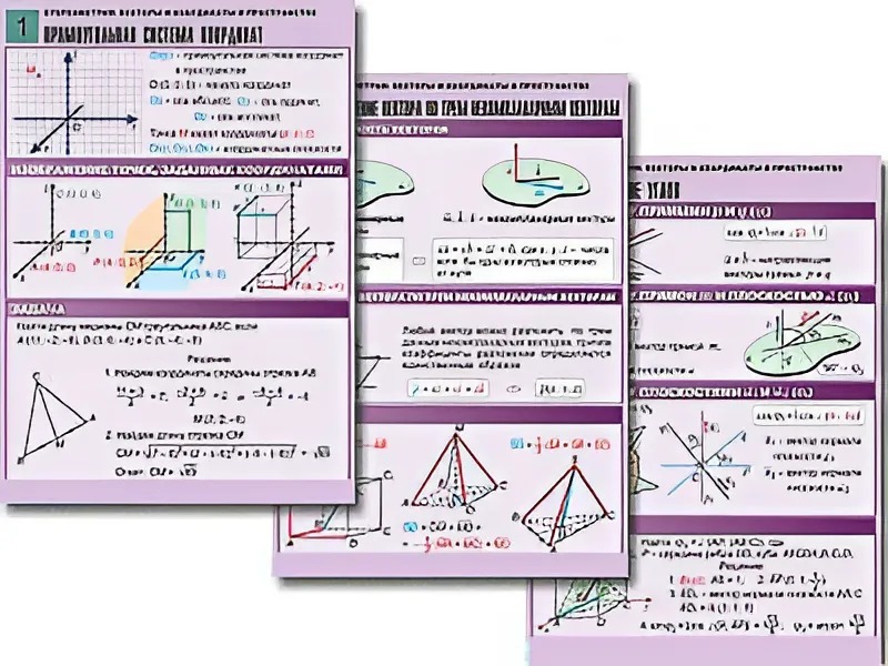 Комплект таблиц по геометрии "Стереометрия. Векторы и координаты в пространстве" (8 таблиц, А1, ламинированные) - fgospostavki.ru - Махачкала