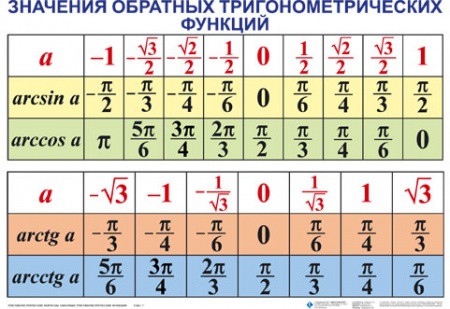 Комплект таблиц Тригонометрические формулы. Обратные тригонометрические функции (7 таблиц)