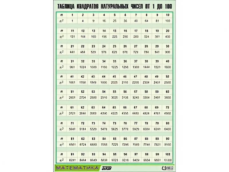 Таблица демонстрационная "Таблица квадратов натуральных чисел от 1 до 100" (винил 70*100) - fgospostavki.ru - Махачкала