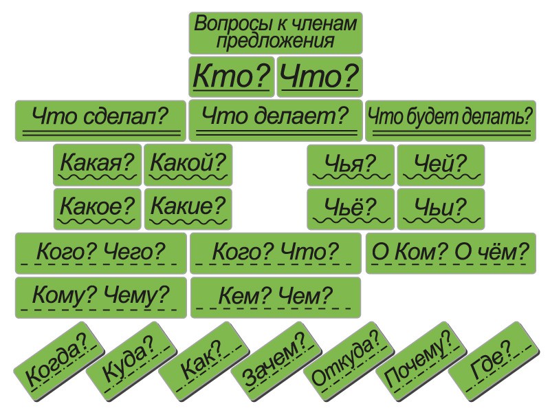 Набор магнитных карточек "Вопросы к членам предложения" (фон зелёный) - fgospostavki.ru - Махачкала