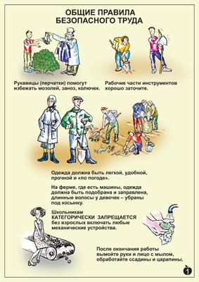 Пособие содержит комплект таблиц с наглядными материалами, предназначенными для проведения с учащимися средней и старшей школы занятий по правилам безопасного труда – в рамках урока ОБЖ, классного часа или внеклассного мероприятия и содержит информацию об общих правилах безопасного труда,правилах труда при выполнении летних работ на пришкольном участке, в саду и огороде (требования к рабочей одежде, подготовка и правила обращения с ручным инструментом, правила при сборе урожая, правила работы с тяжелыми предметами, правила безопасности при обращении с животными и др.); основных правилах электробезопасности; мерах первой медицинской помощи при возникновении травм, ожогов или солнечном ударе.