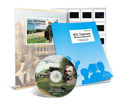 Пособие включает в себя СD-диск, содержащий наглядный изобразительный материал, посвященный жизни и творчеству И.С. Тургенева: портреты писателя и его современников, изображения памятных мест, иллюстрации к произведениям («Записки охотника», романы «Рудин», «Дворянское гнездо», «Отцы и дети», «Накануне»); приложение на альтернативном носителе – слайдах для диапроектора, методическое пособие.