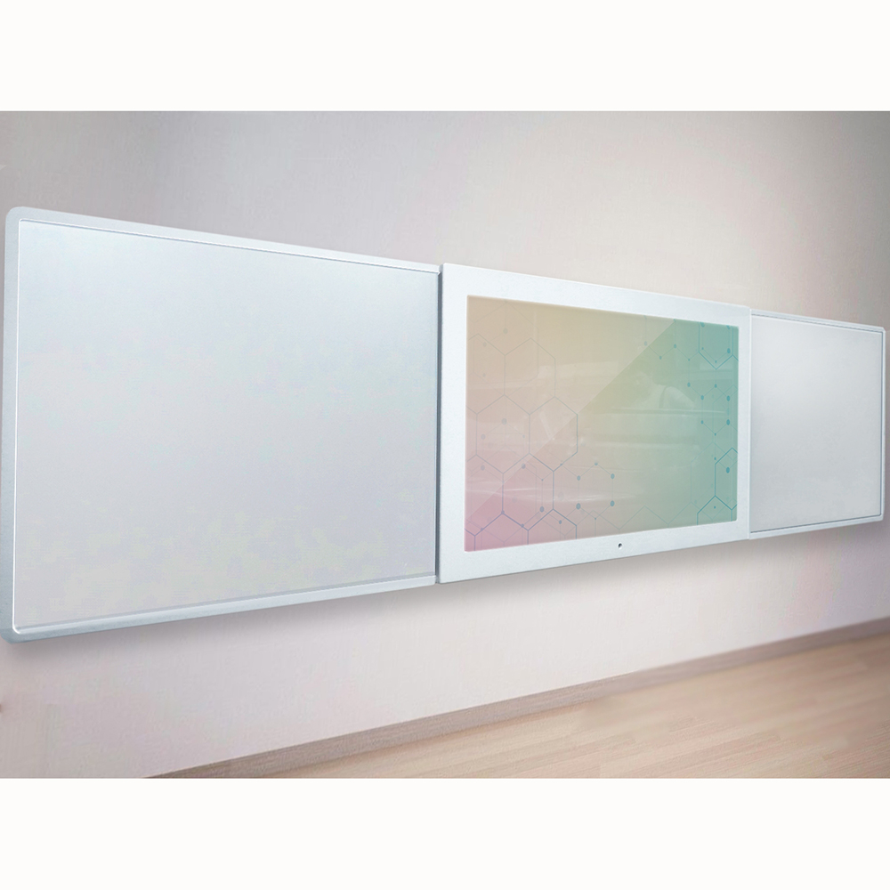 Современная школьная доска, объединяющая инновационные технологии и традиционные инструменты преподавания. В центре интерактивная сенсорная панель с multi-touch (до 10 одновременных касаний), по бокам - пишущая магнитно-маркерная поверхность. Подходит для оснащения школ, учреждений культуры, детских кружков, развивающих и коррекционных центров для детей.
