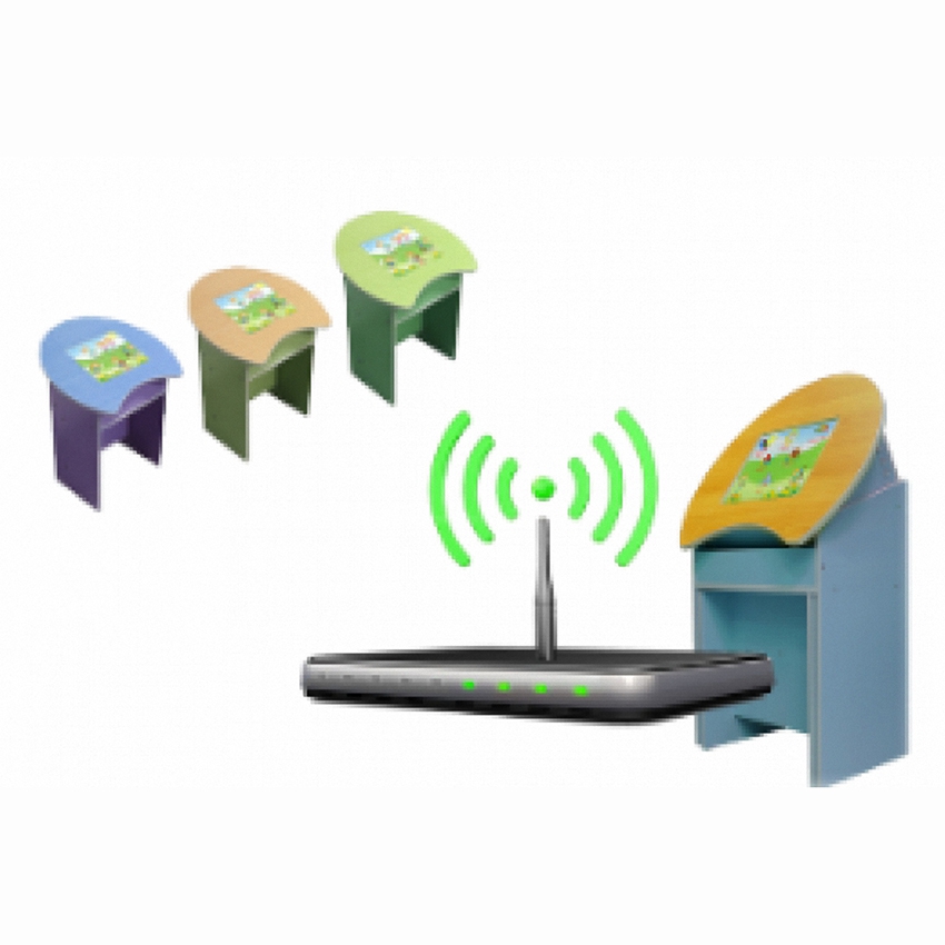 Модуль подключения к сети позволяет связать между собой интерактивные парты (столики, терминалы) и организовать работу в режиме интерактивного класса, под управлением компьютера педагога-воспитателя и дублированием заданий на интерактивной доске.