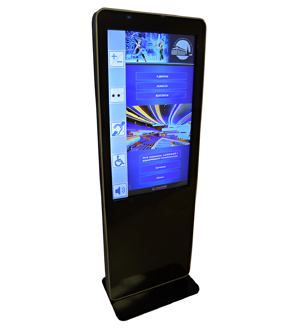 Информационный терминал ISTOK 55P с сенсорным экраном 55’’, со встроенной индукционной системой (для передачи звука на слуховые аппараты), со специальным ПО для инвалидов INVA TOUCH.