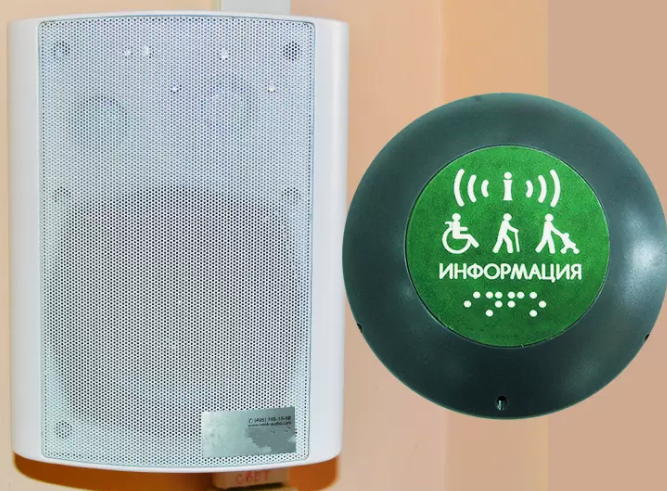 Звуковые маяки и информаторы воспроизводят аудиосообщения для информирования незрячих и слабовидящих посетителей учреждений. Сообщения записываются в зависимости от потребностей каждого учреждения, могут проигрываться как по команде оператора, так и при нажатии на кнопку вызова или автоматически при срабатывании датчика движения. Система может быть подключена к громкой связи учреждения.