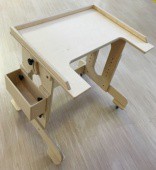 Широкий диапазон регулировки, позволяет, настраивается под любые особенности анатомии ребенка. Высоту столика можно изменять от 70 cм. до 94 cм., также столик имеет регулировку угла наклона столешницы до 30º. Для удобства перемещения столик снабжен колесиками со стояночными тормозами. К любой из сторон столика можно прикрепить ящик для личных принадлежностей ребенка. Изделие выполнено из высококачественной березовой фанеры.