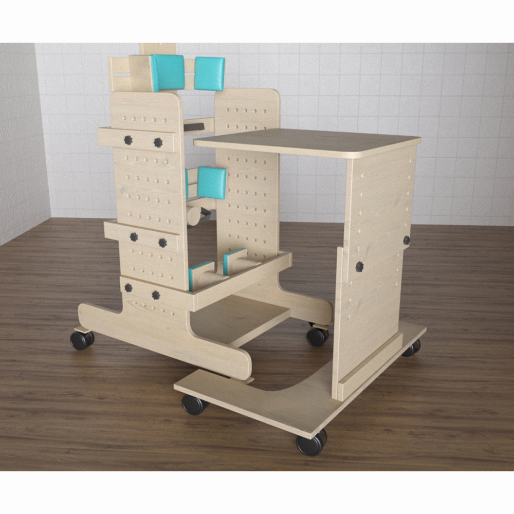 Стол для ребенка с ОВЗ «Хочу учиться» №1 используется в комплекте со стойкой для детей с ОВЗ. Может выступать не только как парта во время занятий, но и служить опорой во время самостоятельного передвижения ребенка по классу/кабинету.