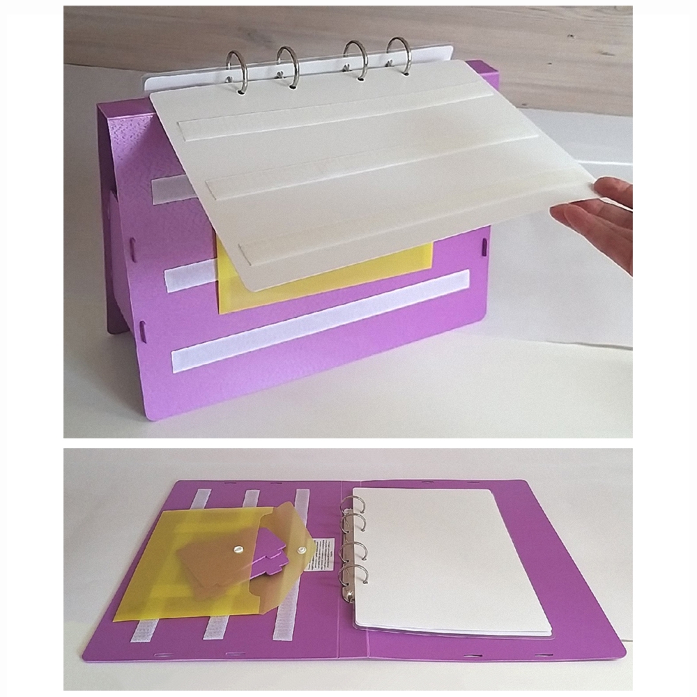 Увеличенный размер папки и крупные ячейки "сейчас - потом" позволяют использовать карточки размером до 10*10 см.