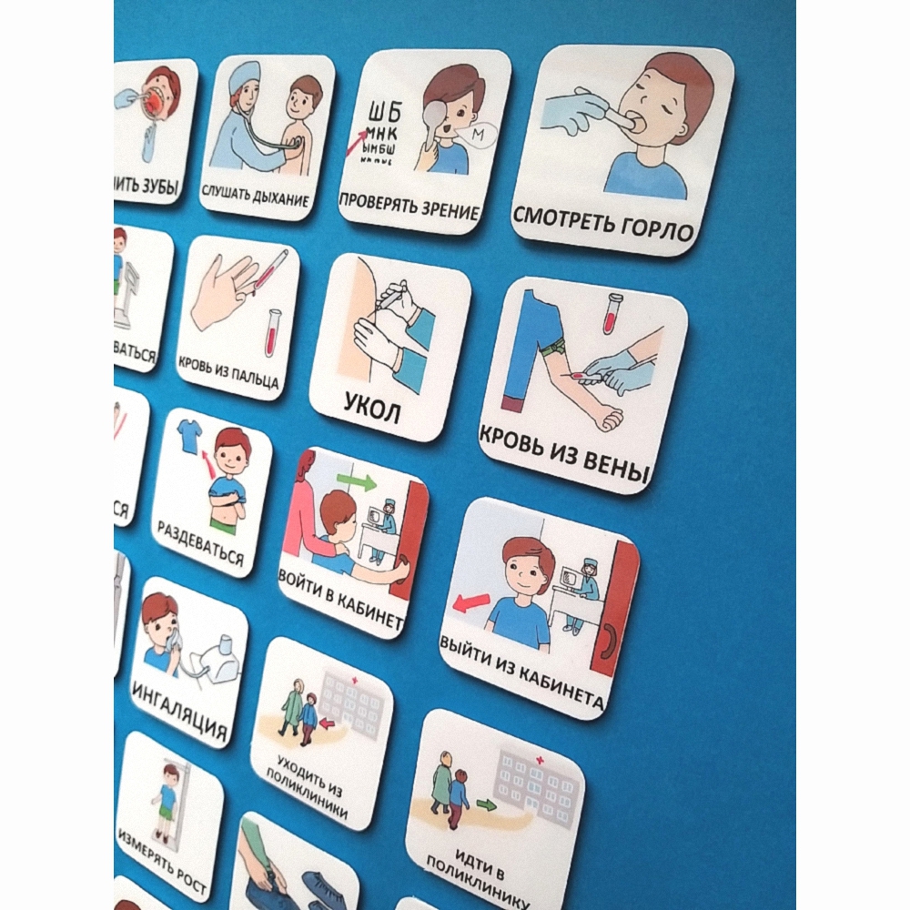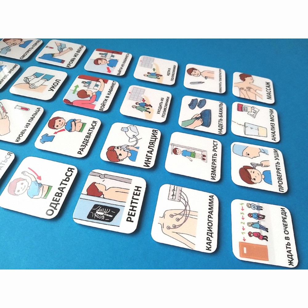 Карточки PECS – система альтернативной коммуникации для детей, у которых трудности с речью и общением. Карточки "К ВРАЧУ" помогут вашему ребенку в повседневной жизни и в школе, уменьшат неприемлемое поведение, способствуют улучшению взаимопонимания. Они пригодны для использования в коммуникативных книгах и визуальных расписаниях.