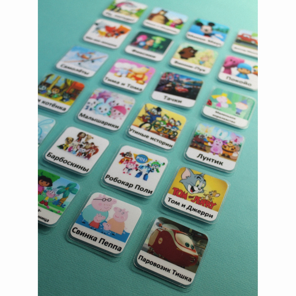 Карточки PECS – система альтернативной коммуникации для детей, у которых трудности с речью и общением. Карточки "Мультфильмы" помогут вашему ребенку в повседневной жизни и в школе, уменьшат неприемлемое поведение, способствуют улучшению взаимопонимания. Они пригодны для использования в коммуникативных книгах и визуальных расписаниях.