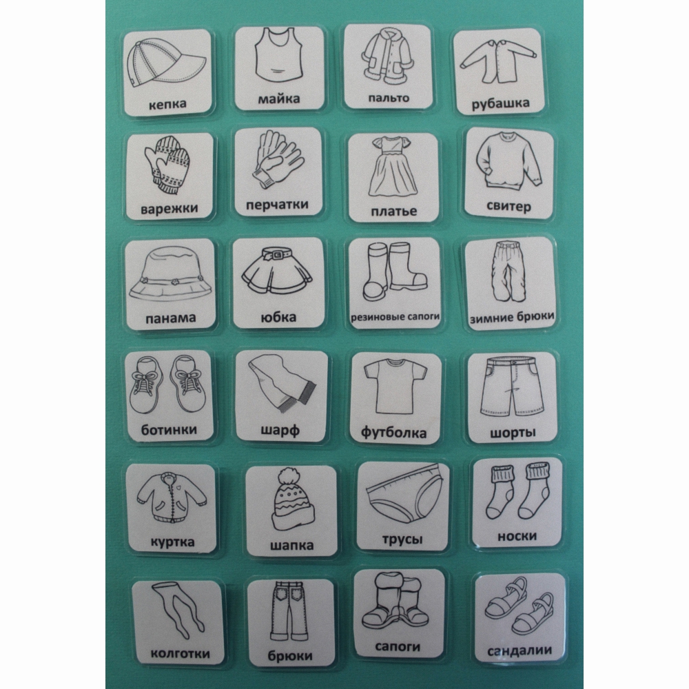 Карточки PECS – система альтернативной коммуникации для детей, у которых трудности с речью и общением. Карточки "ОДЕЖДА" (черно-белые контурные изображения) помогут вашему ребенку в повседневной жизни, уменьшат неприемлемое поведение, способствуют улучшению взаимопонимания. Они пригодны для использования в коммуникативных книгах и визуальных расписаниях.