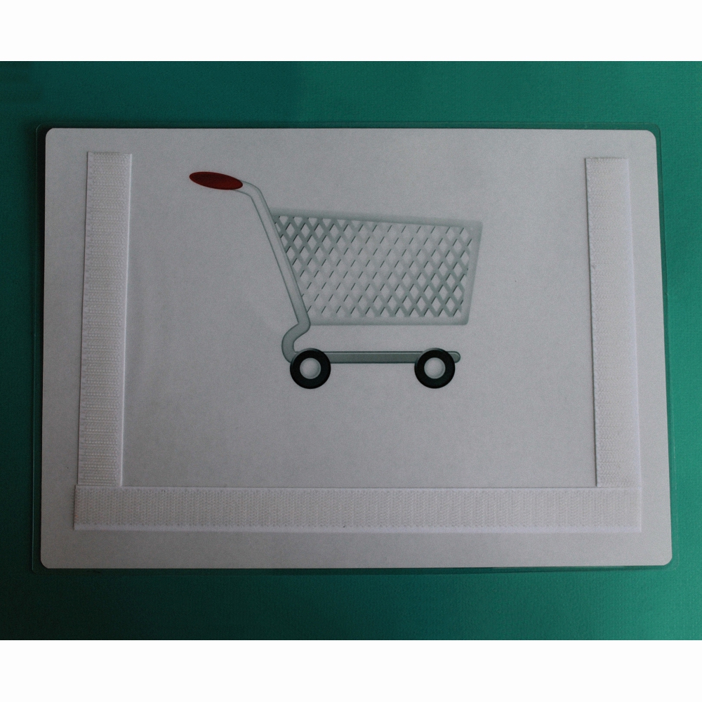 Расскажите ребенку, что многие взрослые составляют список покупок, когда идут в магазин, чтобы ничего не забыть и не покупать ненужные вещи. Решите вместе с ребенком, что он может купить и прикрепите соответствующие карточки к планшету.