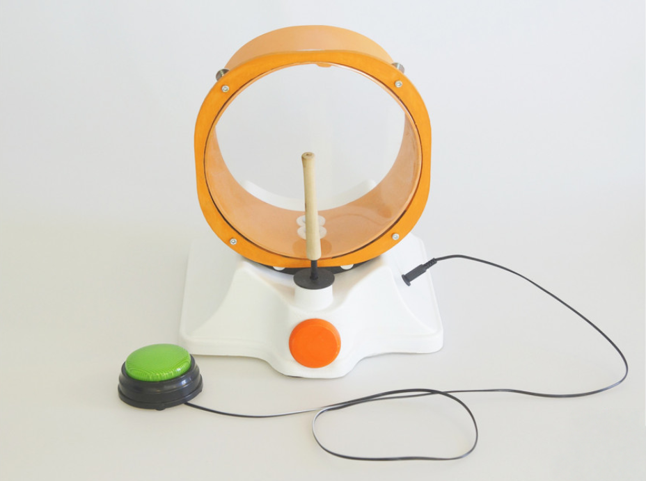 Барабан – это электро-механическое устройство с подвижной частью, предназначенное для занятий с детьми, позволяющее развивать слухоречевой аппарат. Состоит из основы, закрепленного на ней барабана, вращающейся барабанной палочки, кнопки активации электромотора, а также разъем 3,5 мм. Для подключения дополнительного девайса. На нижней части имеется батарейный отсек для четырех элементов питания. Барабан можно активировать при помощи стационарной кнопки расположенной на корпусе устройства, так и подключив через разъем дополнительную выносную кнопку активации. Занятия можно проводить как с одним ребенком, так и с группой детей под руководством педагога.