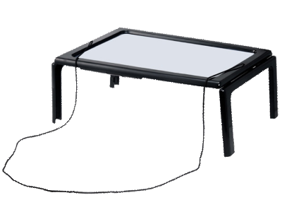 Данное устройство лёгкое, компактное, имеет откидывающиеся ножки, что позволяет поставить лупу над документом который вы читаете, также имеет шнурок, с помощью которого лупу можно повесить на шею. Устройство предназначено для чтения небольших текстовых документов, таких как книги, газеты, журналы, листовки, письма.