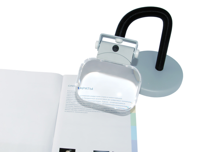 Лупа настольная без подсветки с большим полем обзора. Может использоваться для бинокулярного просмотра.