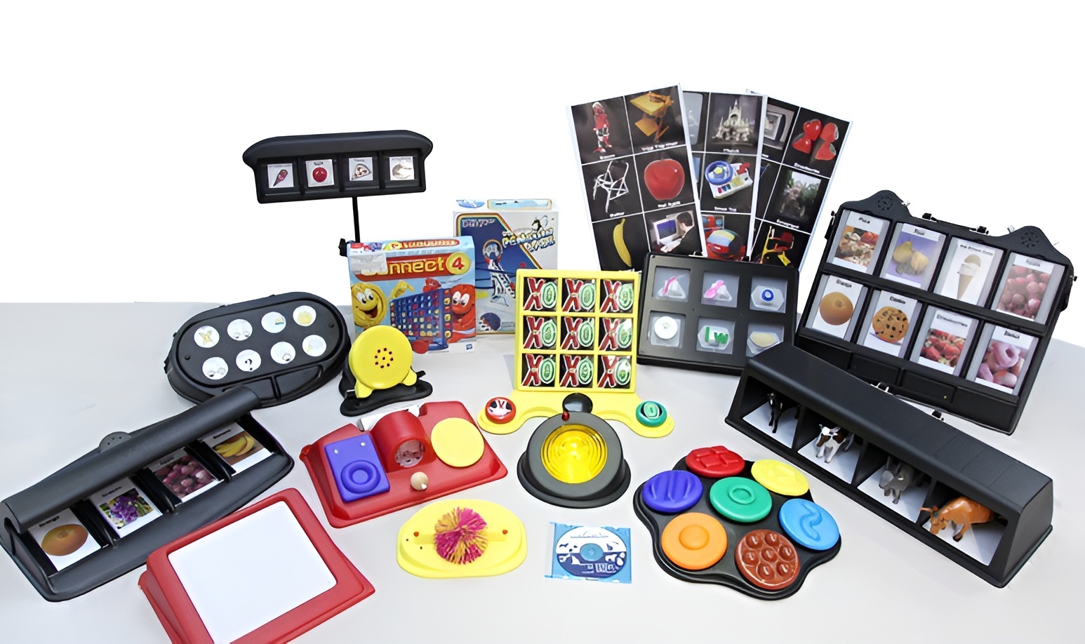 Набор состоит из адаптированных игр и специализированных коммуникаторов, разработанных для обучения и развития детей с нарушениями зрения. Набор полностью русифицирован.