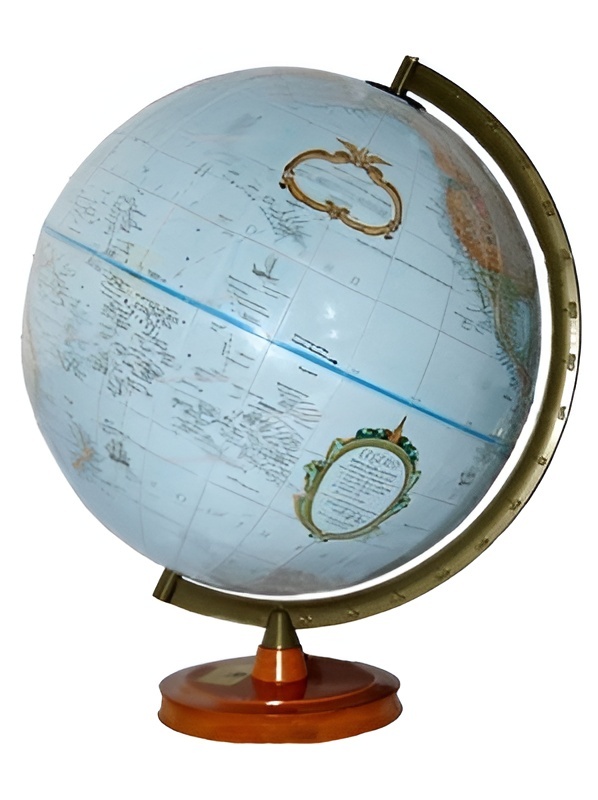 Глобус крепится на металлической ножке. Подставка глобуса выполнена из дерева, имеет стабилизатор устойчивости.