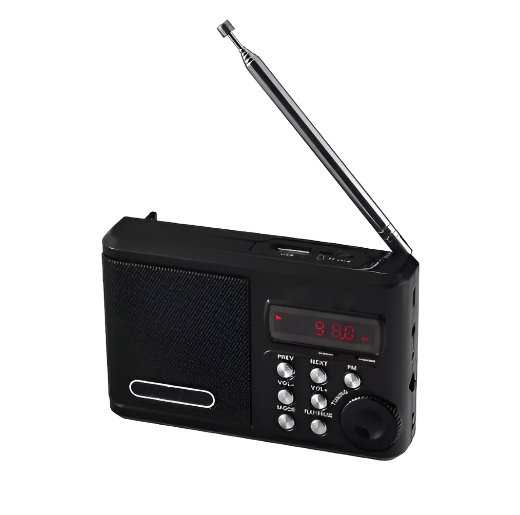 Портативное радио, которое можно взять с собой в небольшой сумке. Приемник поддерживает microSD карточки, на которые вы можете закачать свою музыку, используя его как плеер.