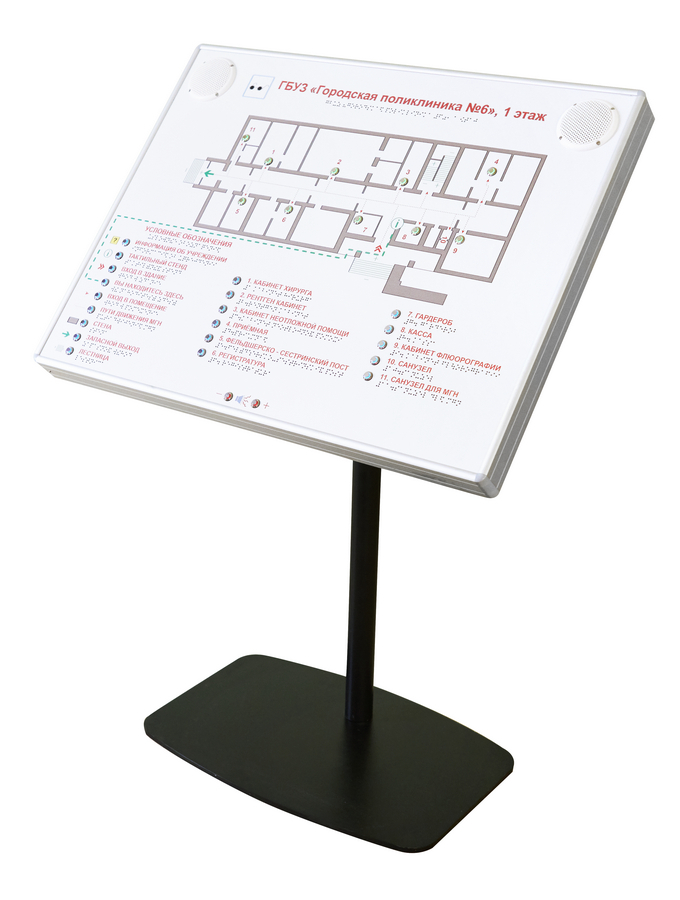 Тактильно-звуковая мнемосхема в комплекте со стойкой (наклонная стойка)