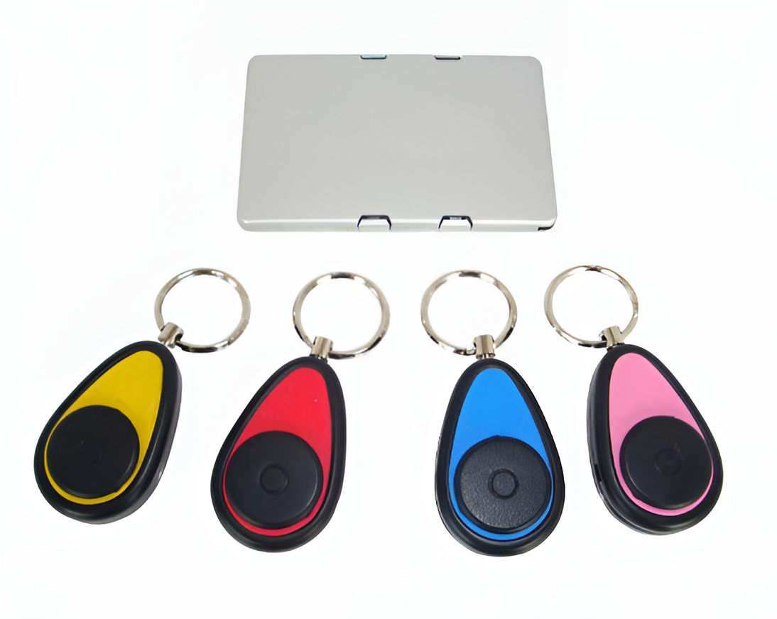 В комплект входит карточка – передатчик, размером с банковскую карту и звуковые брелки-приемники.