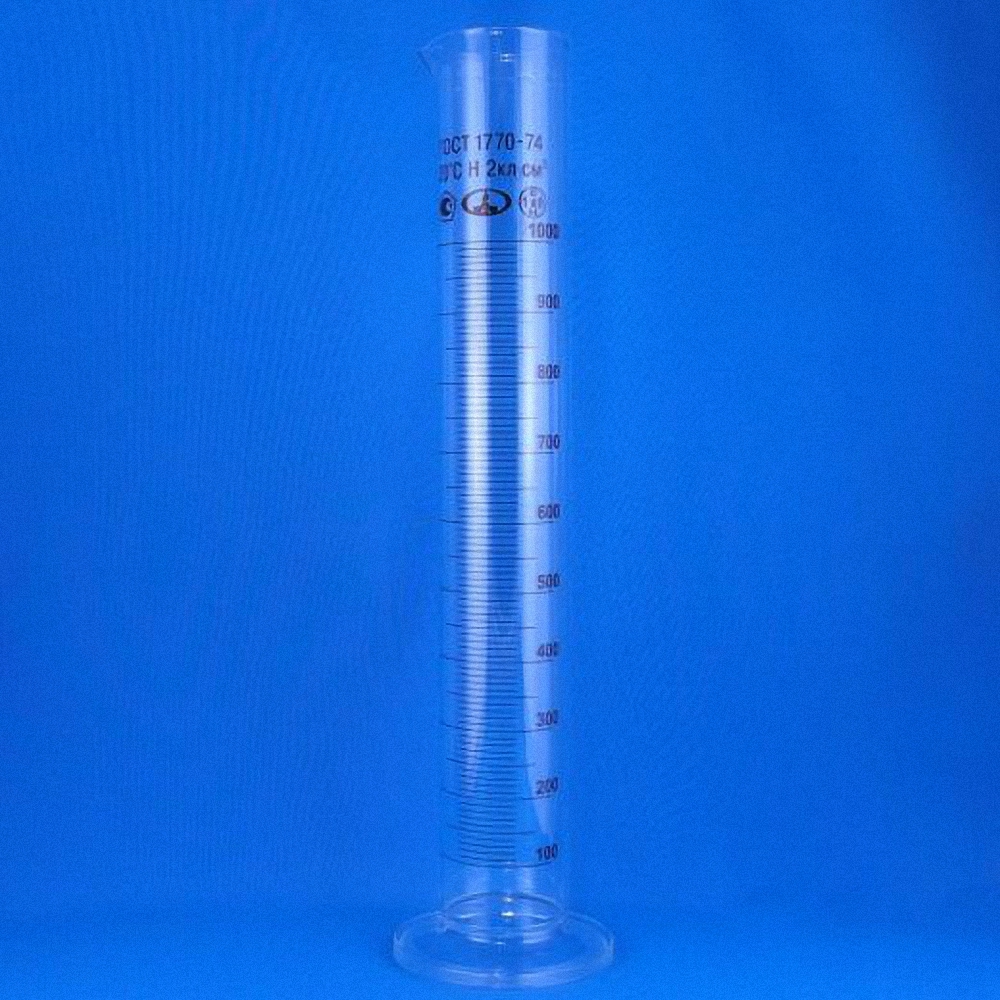Цилиндр измерительный 1000 мл. Цилиндр мерный лабораторный с носиком. Применяется для отмеривания определенного объема жидкости.