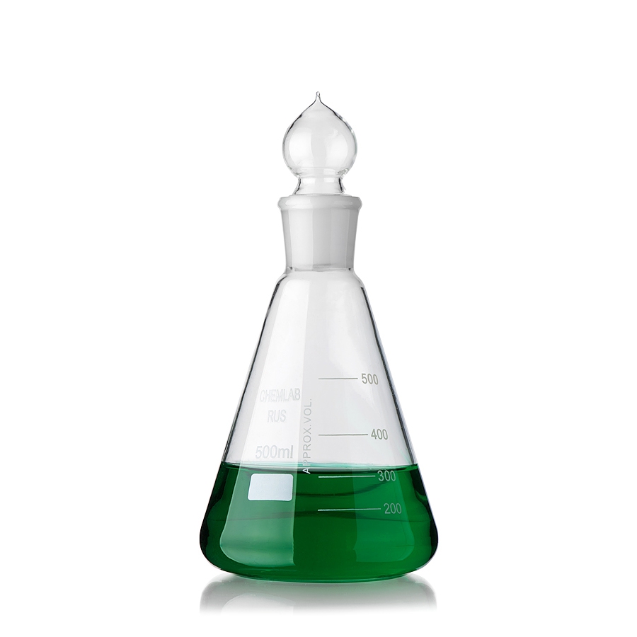 Колба коническая со шлифом 500 мл. предназначена для использования в общеобразовательных учреждениях на уроках химии, физики, биологии для хранения жидких веществ, а также для подогревания жидкостей  на лабораторных работах. Кроме того, широкое применение конические колбы находят в промышленных и медицинских лабораториях, т.к. это очень удобная посуда для титрования, нагревания, кристаллизации.
