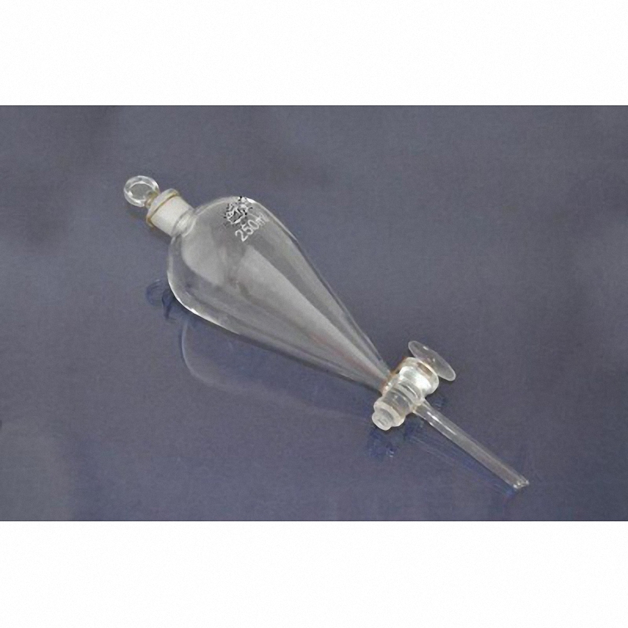 Воронка делительная конусная 250 мл предназначена для разделения двух несмешивающихся жидкостей по их плотности в процессе проведения лабораторных и демонстрационных работ.