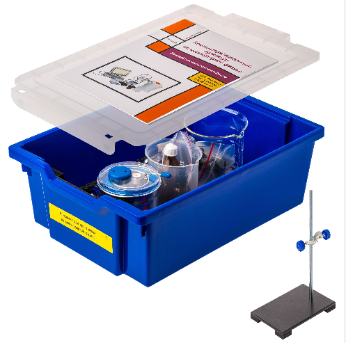 — Цифровой датчик температуры (диапазон измерений от -20 до +110 градусов Цельсия) (2 штуки) — Цифровой датчик абсолютного давления (диапазон измерений от 0 до 200 кПа) — Штатив — Весы учебные электронные (максимальный предел взвешивания 200 грамм) — Стержень для закрепления датчиков в штативе — Емкость с крышкой — Калориметр — Трехкомпонентный шприц объемом 50 мл — Стаканы объемом 800 мл и 500 мл — Трубка со штуцером — Палочка для перемешивания — Глицерин (50 мл) во флаконе — Методическое обеспечение на русском языке — Программное обеспечение для проведения экспериментов — Система хранения