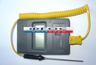 Термометр состоит из корпуса с 4-х разрядным цифровым индикатором, соединительного кабеля с металлическим измерительным щупом длиной ≈ 85 мм, питание прибора батарейка - крона. Диапазон измерения температуры в пределах от -50°С не менее 750°С. Размер термометра ≈110х75х25мм.