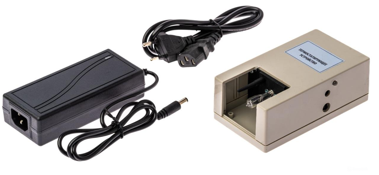 Термостатирующее устройство собрано в корпусе из пластика и рассчитано на использование совместно с кюветой, поставляемой в комплекте цифровой лаборатории.