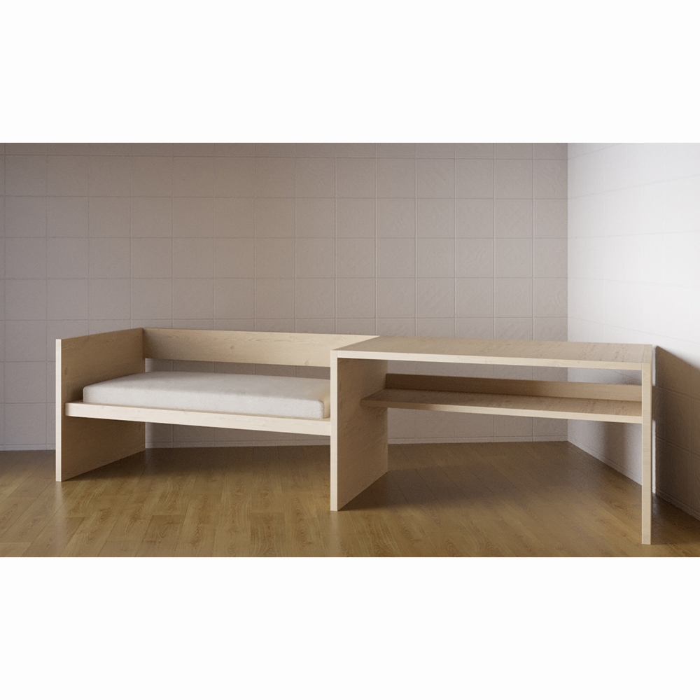 Дизайн наиболее простой и лаконичный, но одновременно с этим отличается особой практичностью – к кровати прилагается стол для занятий. Кровать предназначена для детей от 3 до 12 лет. Выполнена в нейтральной цветовой гамме, что позволяет использовать ее в помещении с любым интерьером. Конструкция кровати надежна и прочна – это гарантирует безопасную эксплуатацию.